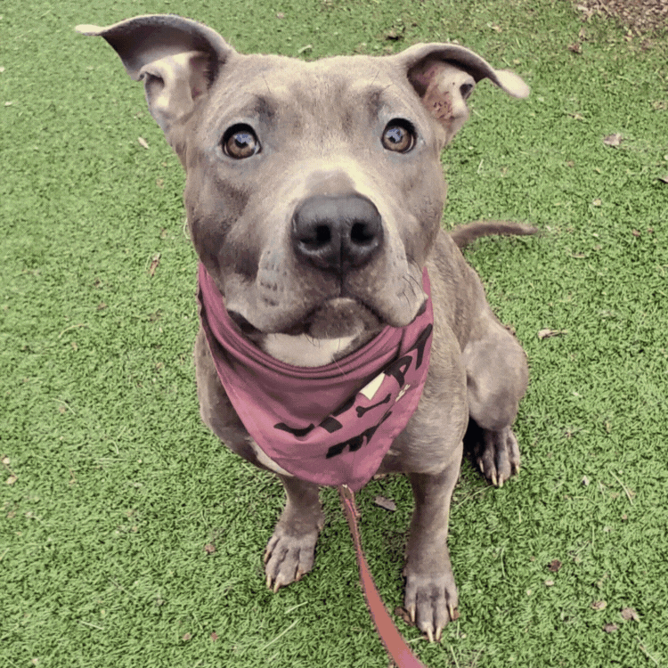 This brown merle beauty may have a little silver in her fur, but her spirit is pure sunshine. She loves her daily workouts, enjoys a good game of fetch, and never says no to a cuddle session.